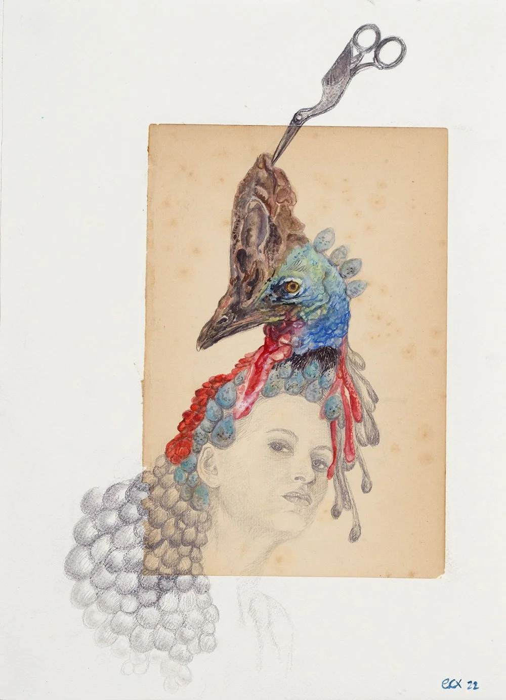Née coiffée 3 - 46 x 61 cm - aquarelle, mine de plomb, gouache, collage - 2021