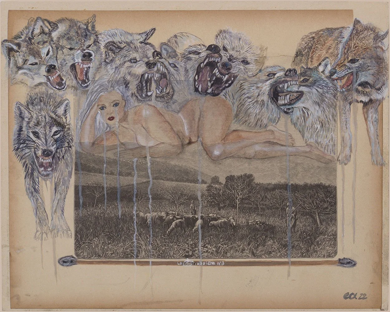 L’agneau et le loup - 21 x 30 cm - collage, aquarelle, encre - 2023