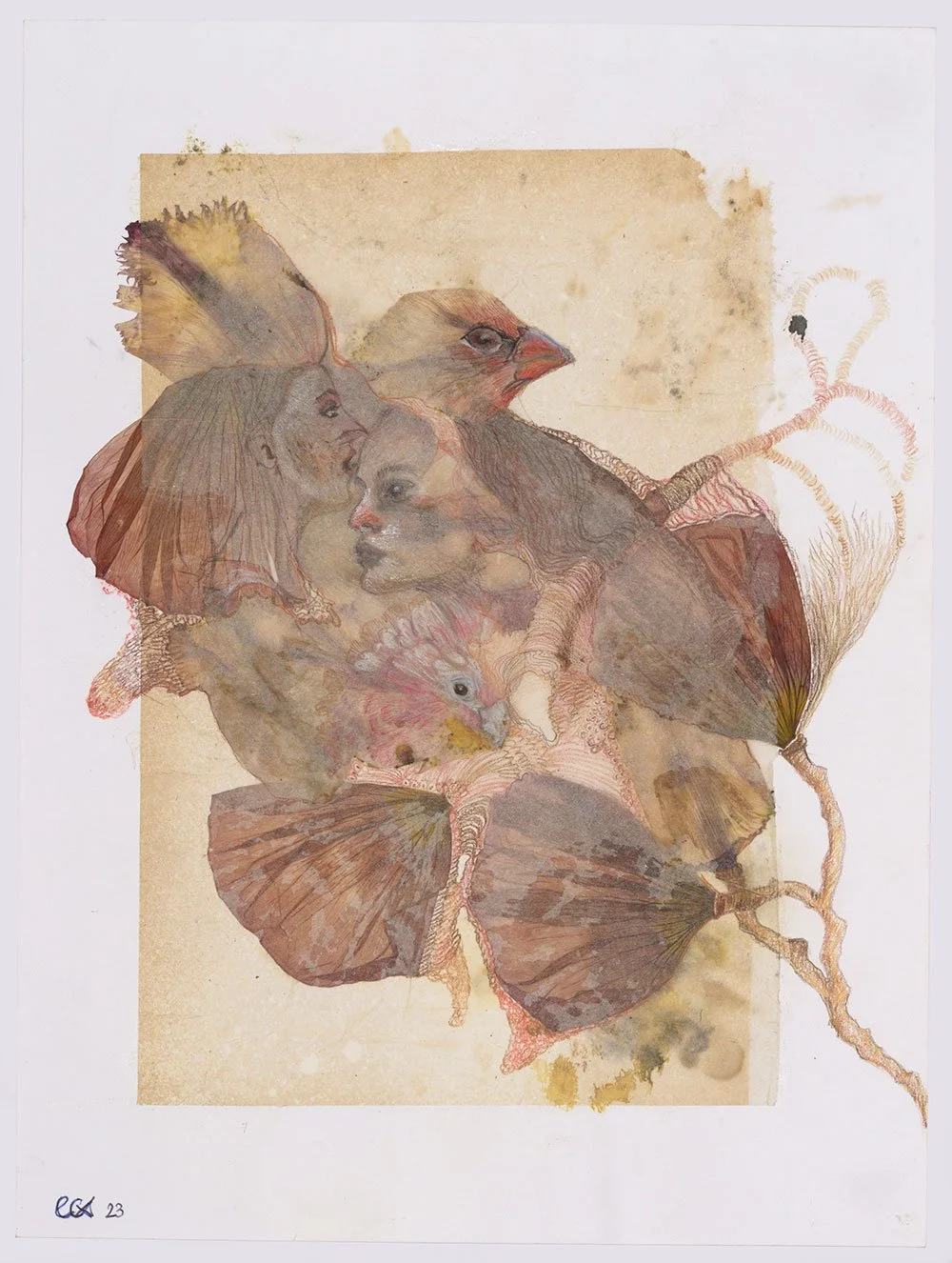Les Ravisseuses 7 - 24 x 32 - crayon de couleur, encre, pétales - 2023 Voir en taille réelle