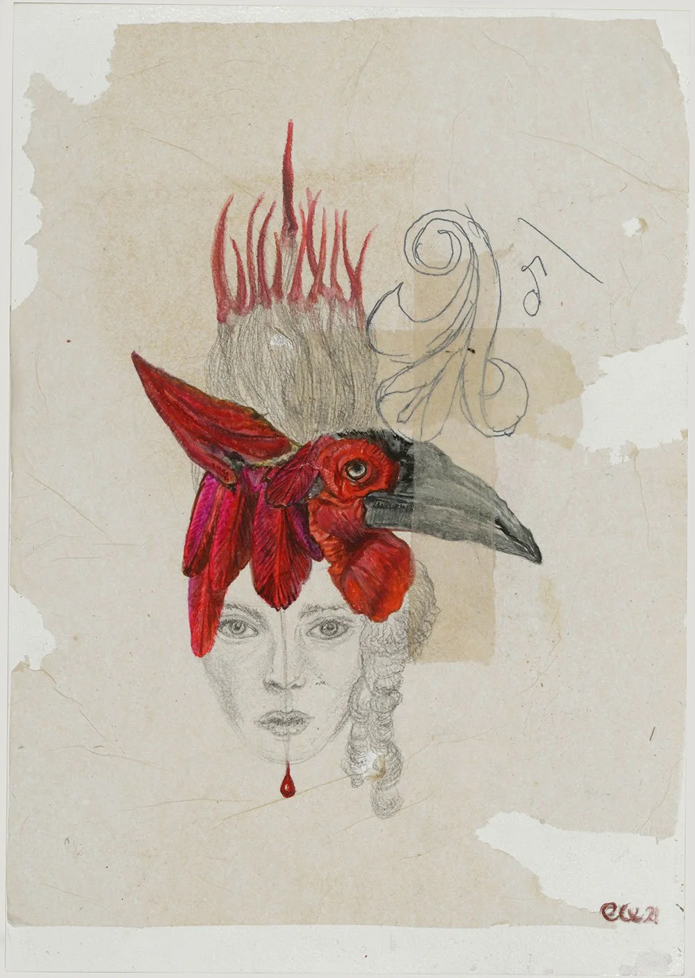 Les Ravisseuses 7 - 24 x 32 - crayon de couleur, encre, pétales - 2023